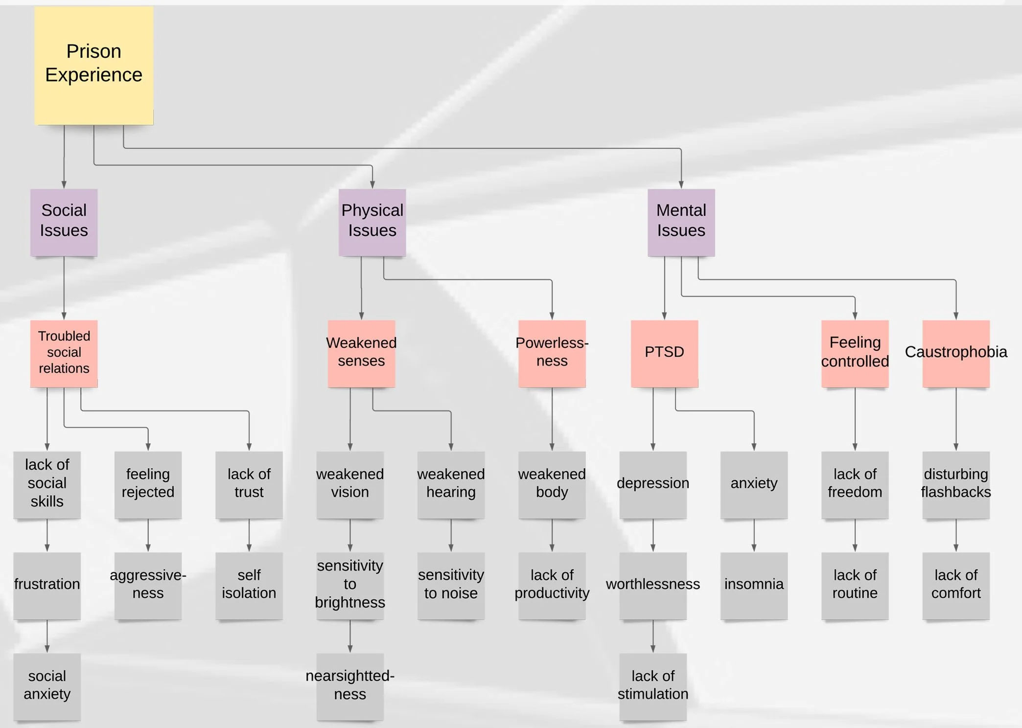 Since the character is fictional, our research focused on the 'pain of the imprisonment' as stated in the reviewed literature on this difficult living experience. This helped us understand the common feelings of suffering among prisoners regardless of geography, gender, or age.